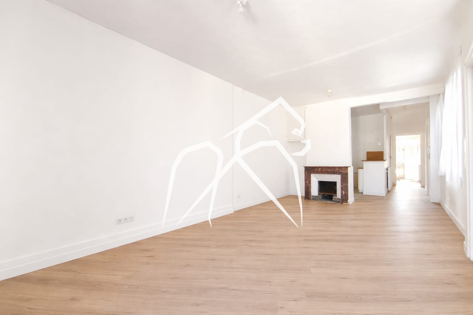 Dès l’entrée, vous serez charmé par le séjour lumineux avec cheminée d’origine et parquet qui donne sur la cuisine aménagée ouverte pour profiter de bons moments conviviaux.