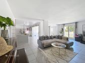 Depuis le salon, l’accès est direct vers la terrasse, le jardin et la piscine. À la belle saison, la maison vit dedans comme dehors, au rythme des rires d’enfants, des repas sous le soleil et des moments de détente au bord de l’eau.