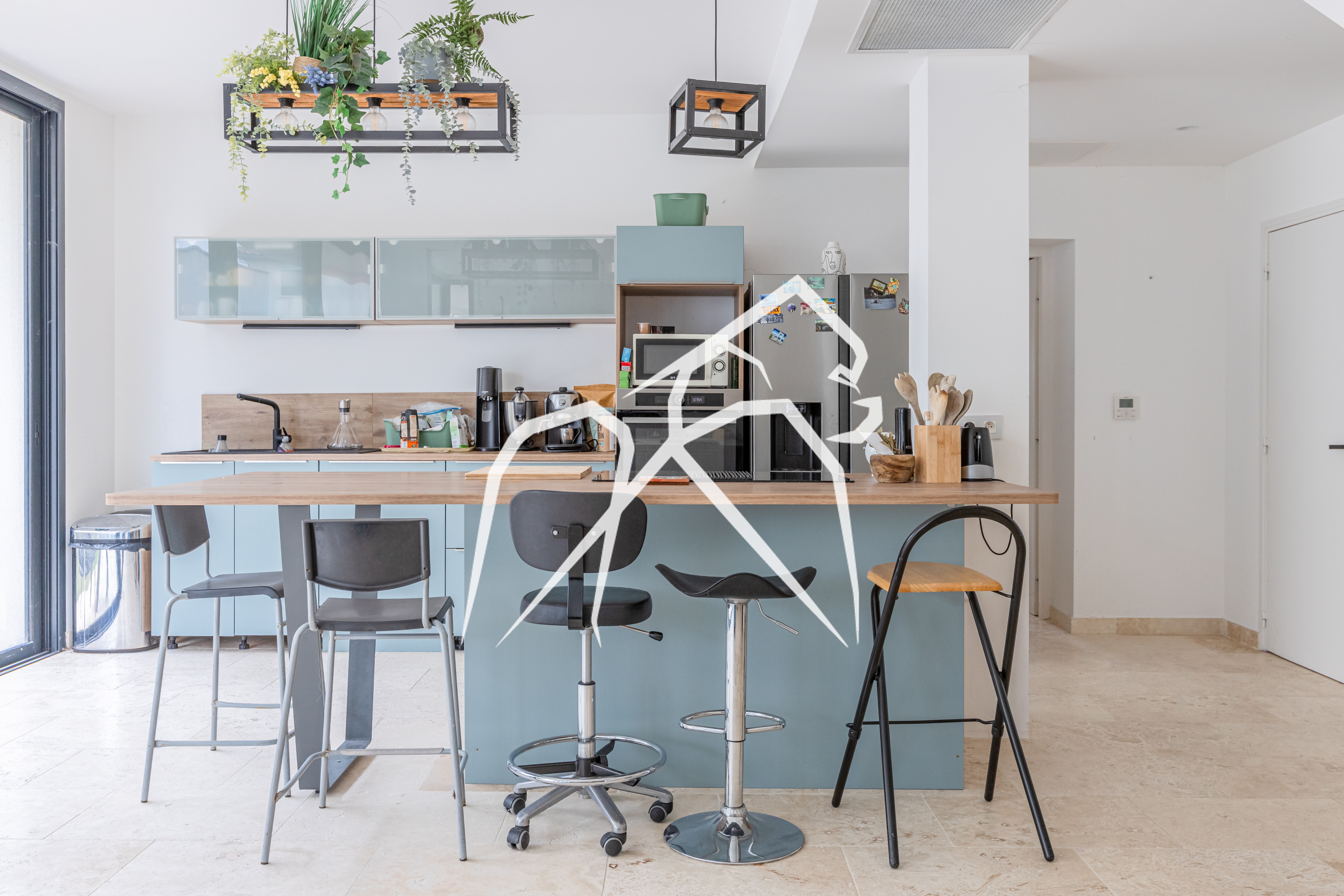 La cuisine ouverte, entièrement équipée avec électroménager de marque et plaque induction avec hotte intégrée, est complétée par un cellier attenant de 8,93 m², alliant esthétisme et fonctionnalité.